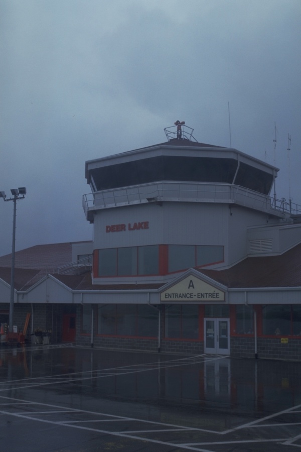 何処かに着陸した。小さなターミナルビルの丸い屋根にディア・レイクDeer Lakeの文字。地図で確認すると、ここはニューファンドランド島の北の端のようだ。小一時間機内で待たされたが動きがない。プリンスエドワード島で買ったポテトチップスを食べながら待つ。もうお昼だ。