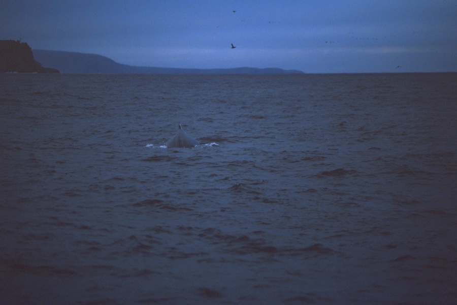 向きを変え、いよいよパフィンの住むウィットレス湾生態保護区に向かう。太陽はすでに姿を隠し、薄暗くなりかけている。