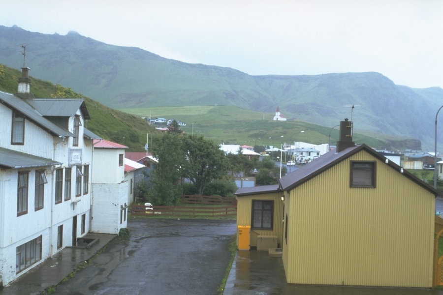 今日の宿泊地ヴィークVík í Mýrdalは、岬からすぐの所にあるアイスランド最南端の町。1号線をしばらく走ると程なくして町に着いた。宿の名前はホテル・パフィンHotel Puffin , Hótel Lundi。小さな町なのでそれほど迷う事もなくホテルは見つかった。が、ホテルと言うよりもB&Bだ。一応看板はパフィンの絵だし、パフィンの剥製が飾ってあったりするが、普通の落ち着いたペンション。まあ「パフィン」と名乗っててもそんなもんだよなあ・・・・なんて思っていたらあらびっくり。ホテルのすぐ裏が崖になっているのだが、なんとパフィンが飛び交っている!!。洗濯物でも干していたらパフィンに糞をされそうだ。まさしくホテル・パフィン。